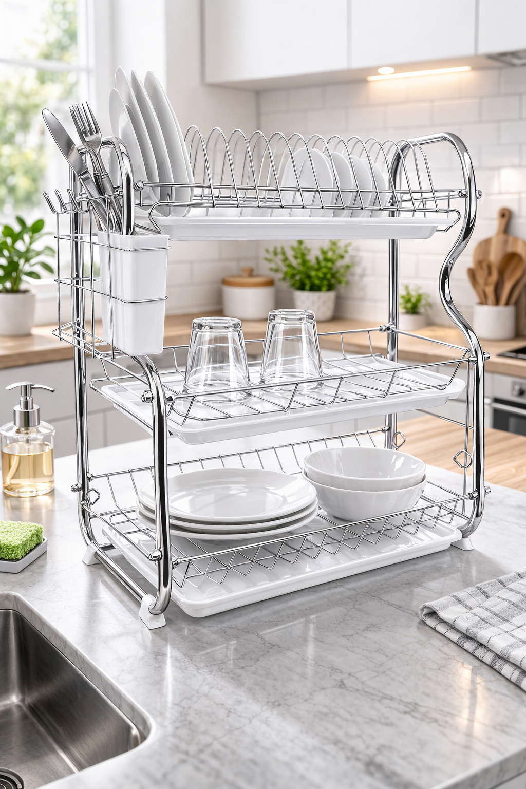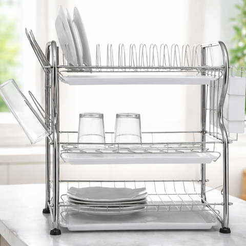 Ця потрійна сушарка для посуду стане незамінним помічником у повсякденних кухонних справах, роблячи процес сушіння посуду швидким, зручним та естетичним.