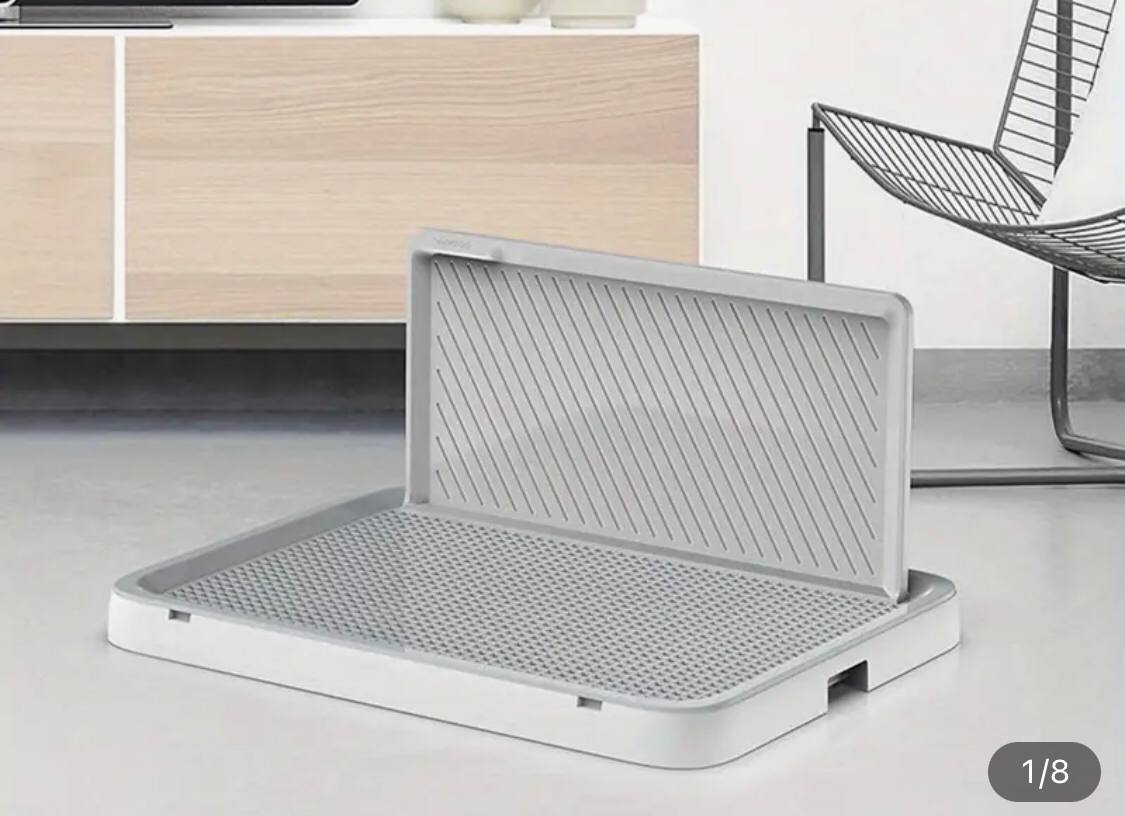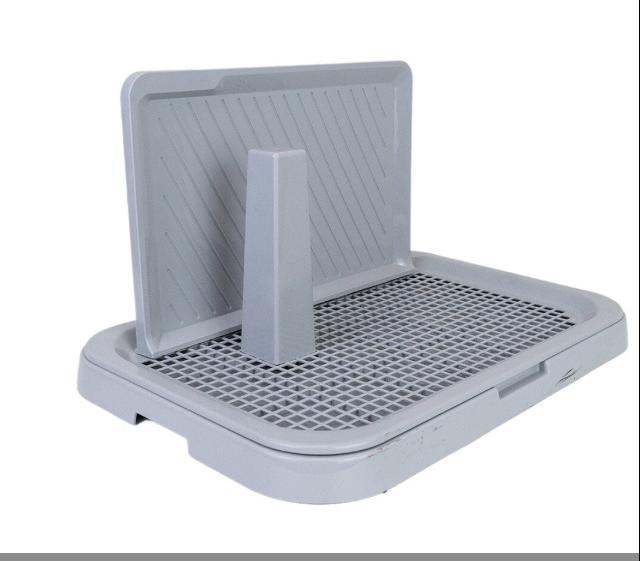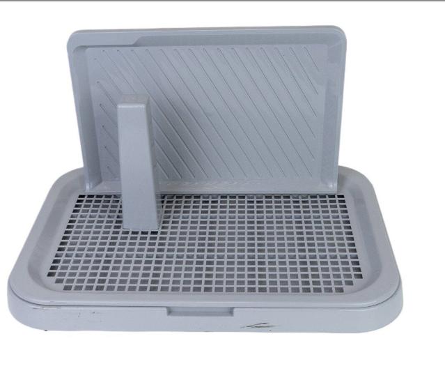 Практичний туалет для цуценят та собак дрібних порід. Його використання забезпечує охайність собаки, полегшуючи вам, тим самим роботу з підтримки порядку в приміщенні. Складається з лотка з високим бортиком та решітки з фіксатором, стовпчика та захисної стінки. Лоток виконаний з нетоксичного пластику, безпечний для тварин та людей
