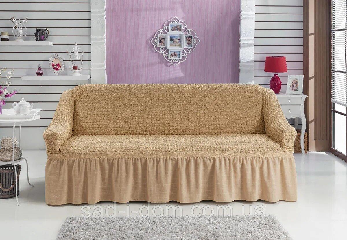 Песочний Турецький натяжний чохол на універсальний диван
