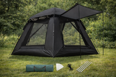 Туристичний намет для кемпінгу та походу / Намет-автомат 210х210х140см Чорний
