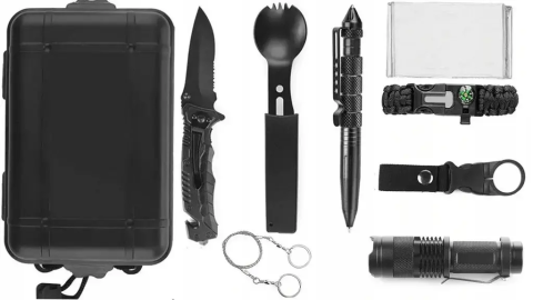 У набір для виживання входить все, що може знадобитися в екстреній ситуації, на природі, кемпінгу і не тільки. Легка вага не буде надто важкою для вашої подорожі. Функціональні інструменти підходять для різних потреб, коли ви знаходитесь в дикій природі. Водонепроникний та удароміцний, може тримати інструменти у безпечному становищі довговічними та стабільними. Підходять для екстреної самостійної допомоги у походах та на природі, для сімейних потреб, для забезпечення безпеки автомобіля тощо.