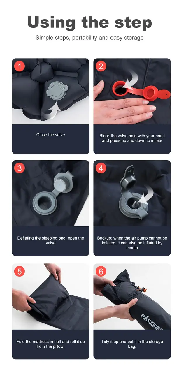 Завдяки унікальній технології саморегульованих повітряних осередків килимок підлаштовується під форму тіла. У той же час забезпечуючи максимальний комфорт, підтримку хребта під час сну та збереження тепла. Матрац обладнаний повітряним клапаном, а у здутому вигляді займає мінімум місця у рюкзаку або місці зберігання.