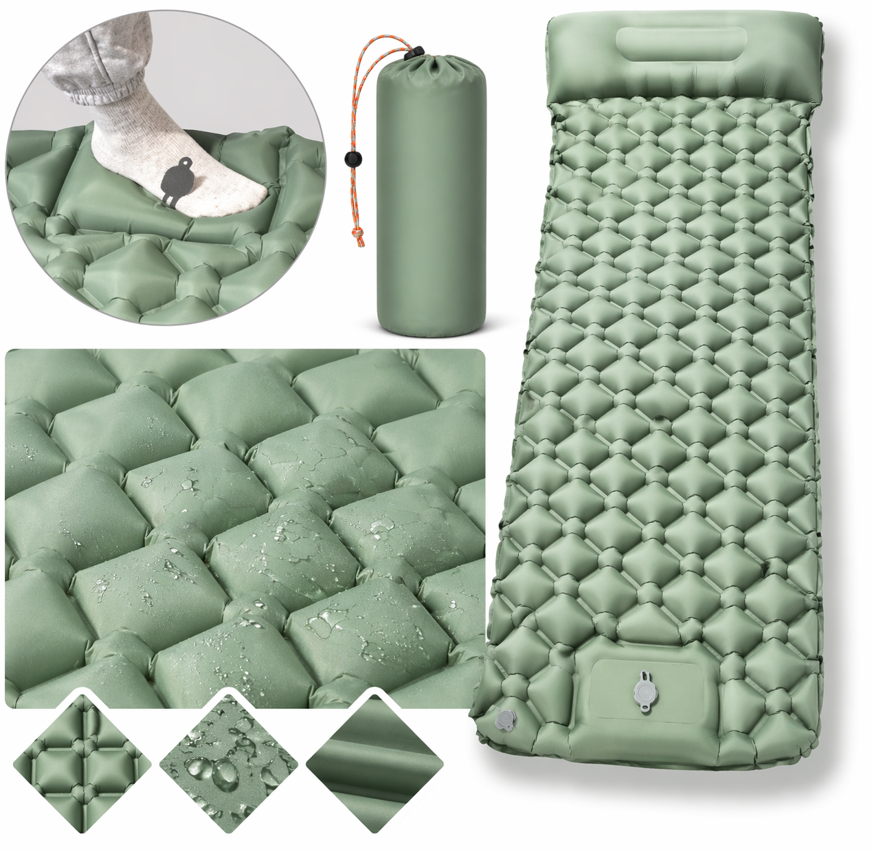 Матрац надувний туристичний з подушкою 190x60x5см із чохлом Світло-зелений