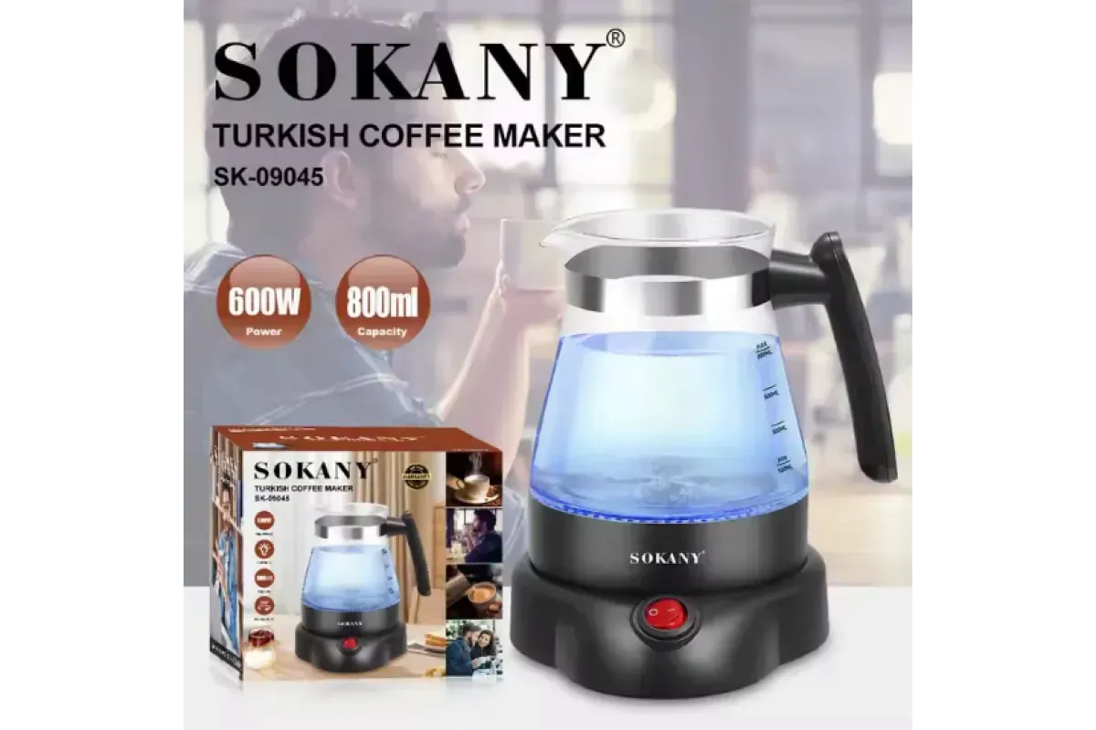 Електрична турка SOKANY (SK-09045) – чудовий варіант для невеликої кухні чи офісу. Пристрій дозволяє готувати до 4 чашок кави за раз, відрізняється привабливим дизайном та компактними розмірами, а простий принцип роботи не потребує спеціальних знань та навичок.