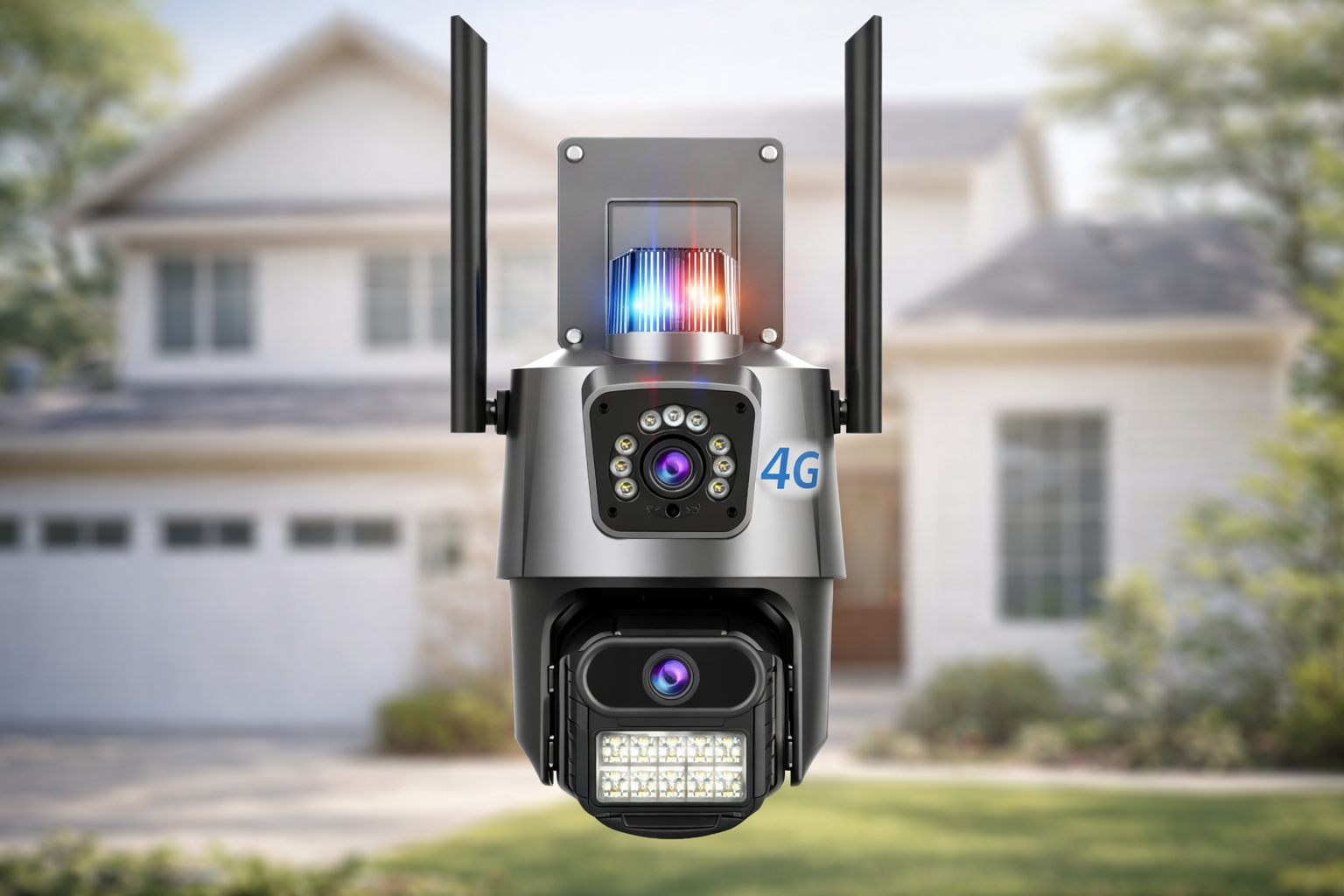 Оснащена подвійним об'єктивом та поліцейською світловою сигналізацією, вулична камера надає визначний рівень безпеки для вашого будинку. Поворотна функція та повнокольорове нічне бачення гарантують чудовий моніторинг у будь-який час.