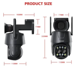 З можливістю віддаленого моніторингу через мобільний телефон та підтримкою зберігання записів на SD-карті, ця камера забезпечує 24-годинний запис відео. Стійкість до зовнішніх умов забезпечується водонепроникним корпусом IP66, що робить його придатним для будь-якого середовища. Установка легка та гнучка з регульованими кронштейнами.