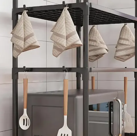 Полиця-органайзер для мікрохвильової печі - це багатофункціональний стелаж для зберігання з 2 або 3 рівнями, яка оптимізує використання простору на вашій кухні або у ванній.