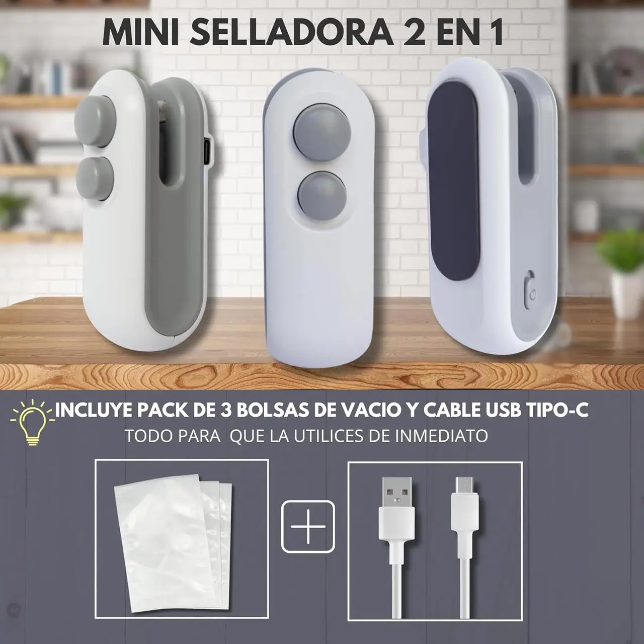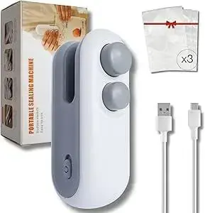 Універсальний міні-зварювач пластикових пакетів для консервування продуктів харчування з упаковкою з 3 вакуумних пакетів, 2-в-1 запечатування та різання, термозварювач, USB-зарядка та портативний.
