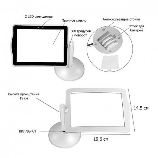 Збільшувальна настільна лупа Brighter Viewer Універсальна Led з підсвічуванням на штатив-підставці