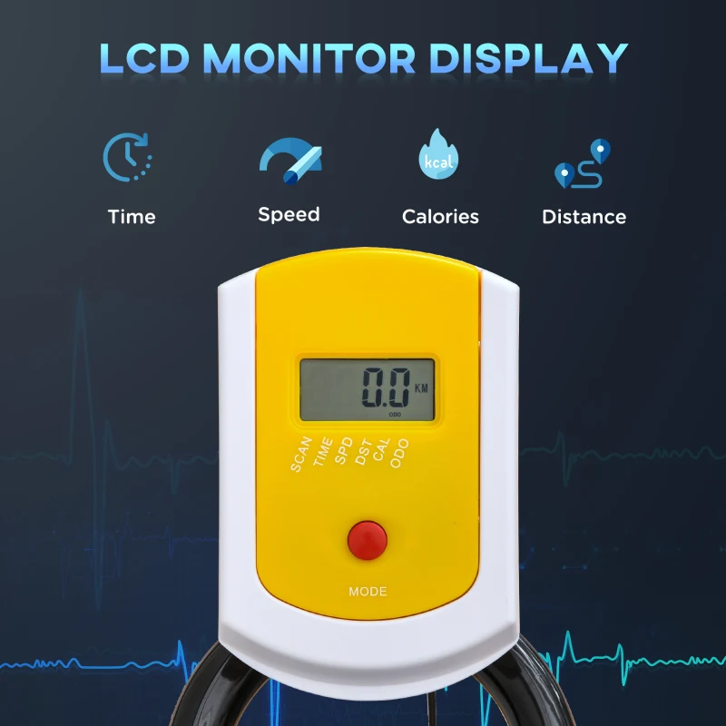 РК-монітор: РК-монітор велотренажера відображає ваші фітнес-статистики, такі як швидкість, відстань, час та калорії. Кріплення дозволяє одночасно займатися спортом та дивитися відео.