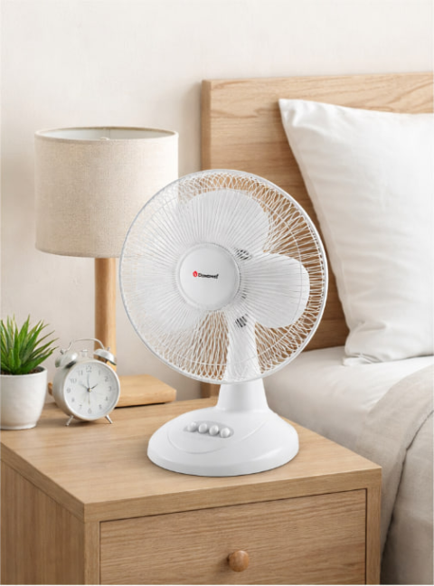 Обладнаний прилад двосторонні захисні грати, що робить пристрій безпечним для дітей, а також робота вентилятора виключно безшумна, що робить його ще зручнішим у використанні. Вентилятор Домотек працює від мережі та оснащений 3 швидкостями. Є функція автоповороту. Лопаті вентилятора виготовлені із пластику.