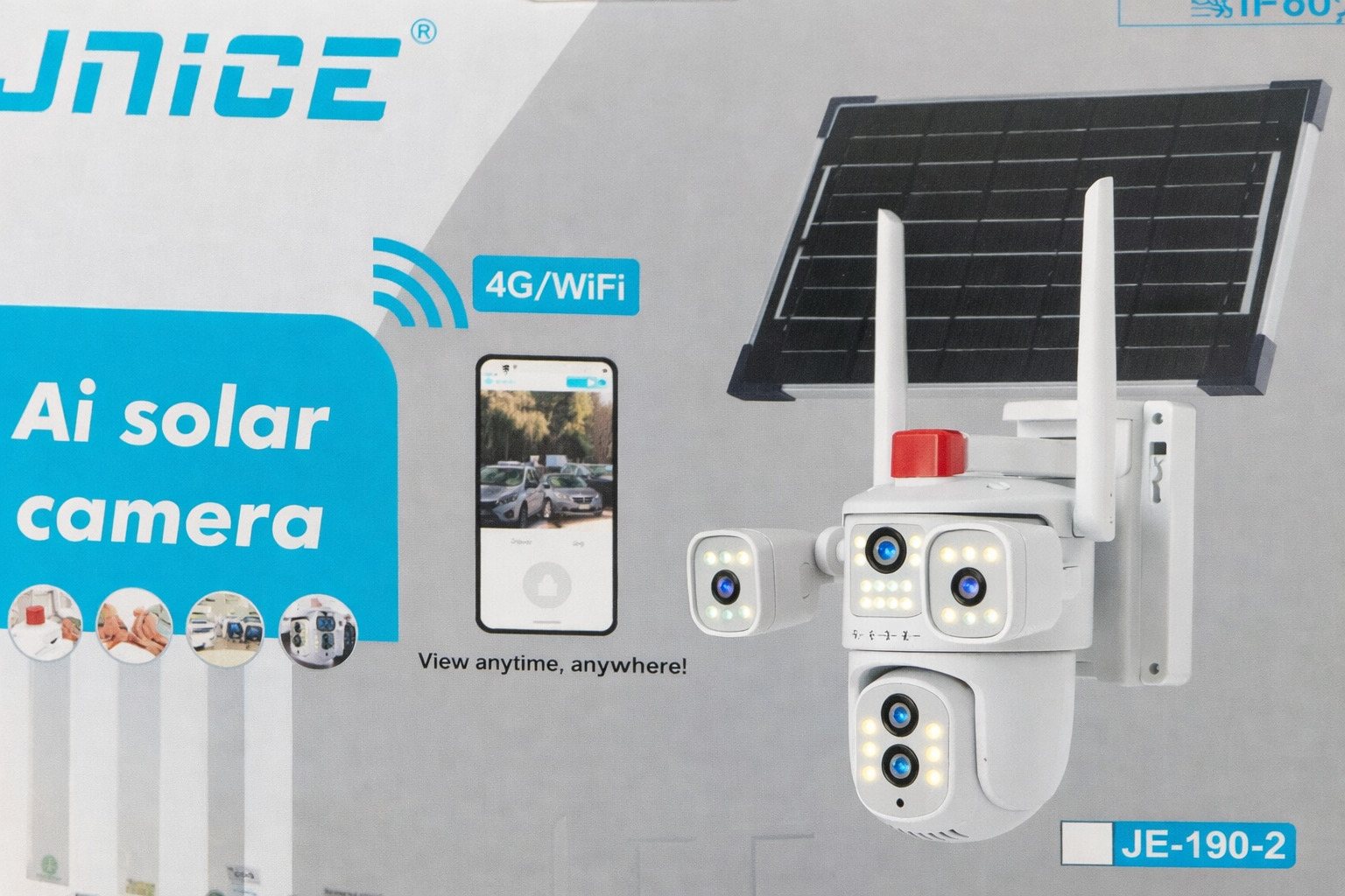 Відеокамера 4G IP66 4G 12mp (JE-190-2) 4 екранні 360-градусні камери IP-камера чотири об'єктиви Біла