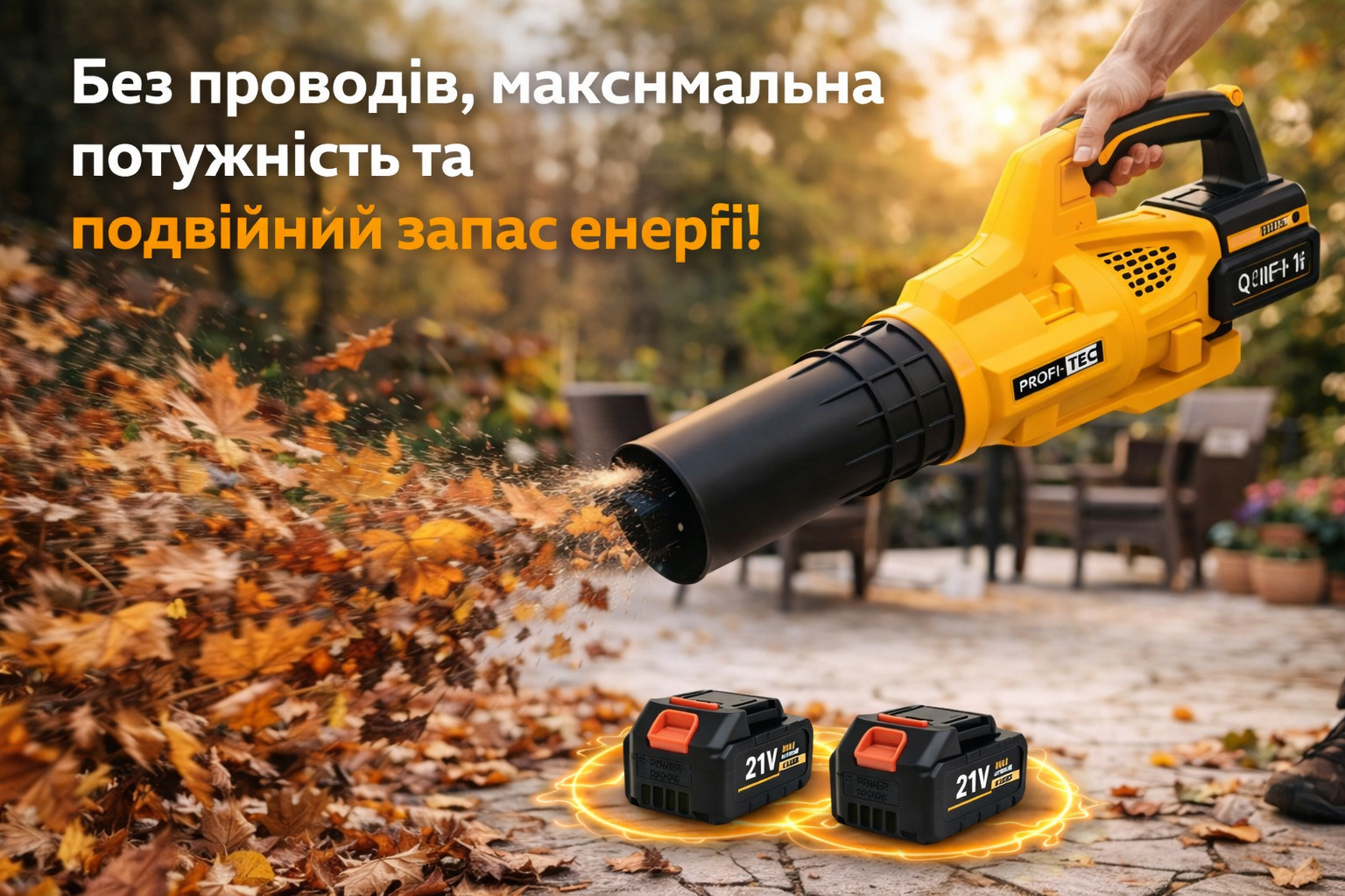 💨 Потужний потік повітря – ефективно здуває листя, свіжий сніг та сміття.