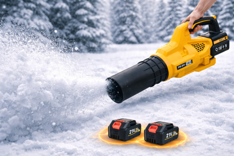 Потужна акумуляторна повітродувка QIF-11F у жовтому кольорі призначена для швидкого та ефективного збирання листя, снігу, пилу та сміття. Відмінно підходить для використання у дворі, дачі, біля будинку, гаража, складу або комерційних об'єктів.