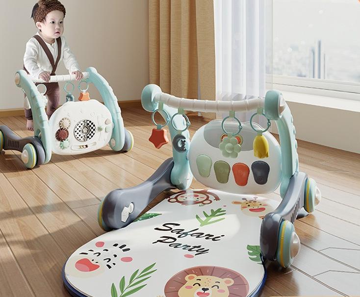 Наши ходунки - коврик может стать отличным подарком на годик, а их многофункциональность позволяет использовать их как каталку, бизиборд , развивающую музыкальную панель и конечно как развивающий коврик для ребенка. Встроенные электронные модули, такие как пианино и пульт, делают игру еще более увлекательной. Для безопасности вашего малыша предусмотрены ограничители и резиновые бортики.