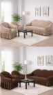 Набір чохлів з декоративною спідницею. У наборі — чохол для дивана та два чохли для крісел. Чохли виконані з високоякісного високоеластичного матеріалу з гарним узором. Чохли прикрасять м'які меблі, стануть елегантним акцентом в інтер'єрі, також дозволять приховати вади старого дивана чи крісел. Чохли легко і швидко надягаються, добре тягнуться, щільно прилягають, підходять для більшості диванів та крісел стандартного розміру.