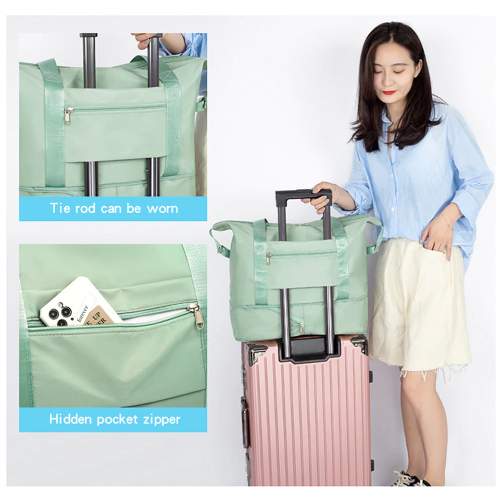 Будь ласка, переконайтеся, що ширина між двома стрижнями на валізі становить менше 16 см, адже саме стільки потрібно для того, щоб зачепити сумку зверху. Сумка виготовлена з легкого водонепроникного та зносостійкого матеріалу, відмінної міцності та зручного відчуття для рук. Кріплення дозволяє сумці ковзати по трубці з вертикальною ручкою багажу для зручності транспортування. Складна конструкція, швидка упаковка в міні-розмір та зручність перенесення. Він ідеально підходить для всіх, хто перебуває в дорозі, всередині багато місця без кишень.