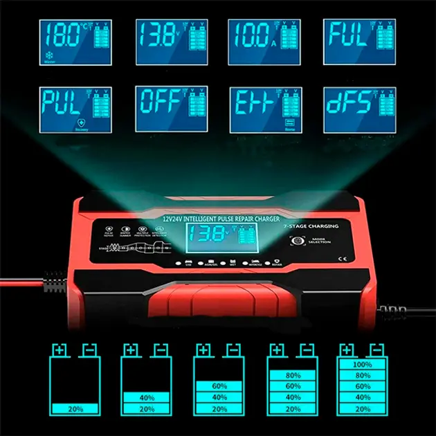 Підтримка акумуляторів: 12 В, 24 В, 40 Ач-100 Ач