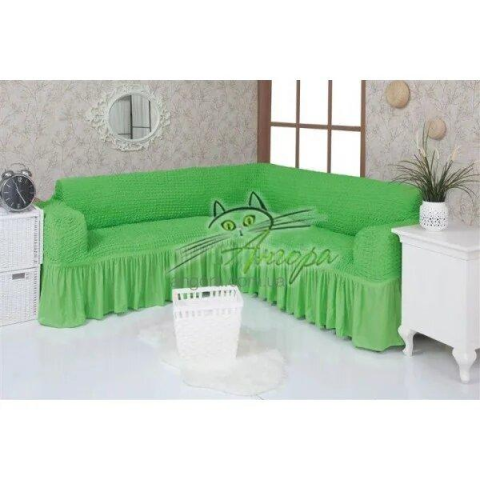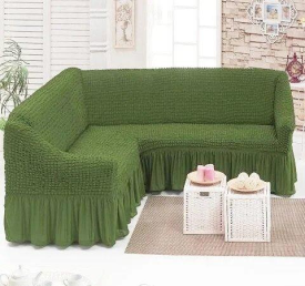 Зелений Турецька накидка на кутовий диван з оборкою, натяжний чохол на диван