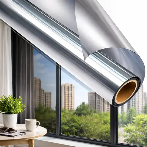 Солнцезащитная пленка – это очень эффективная пленка от палящего солнца в летний период, также применяется как зеркальная пленка, защищающая помещение от «чужих глаз».