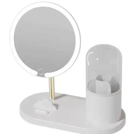 Дзеркало з LED підсвічуванням кругле + тубус для зберігання косметики (Білий)